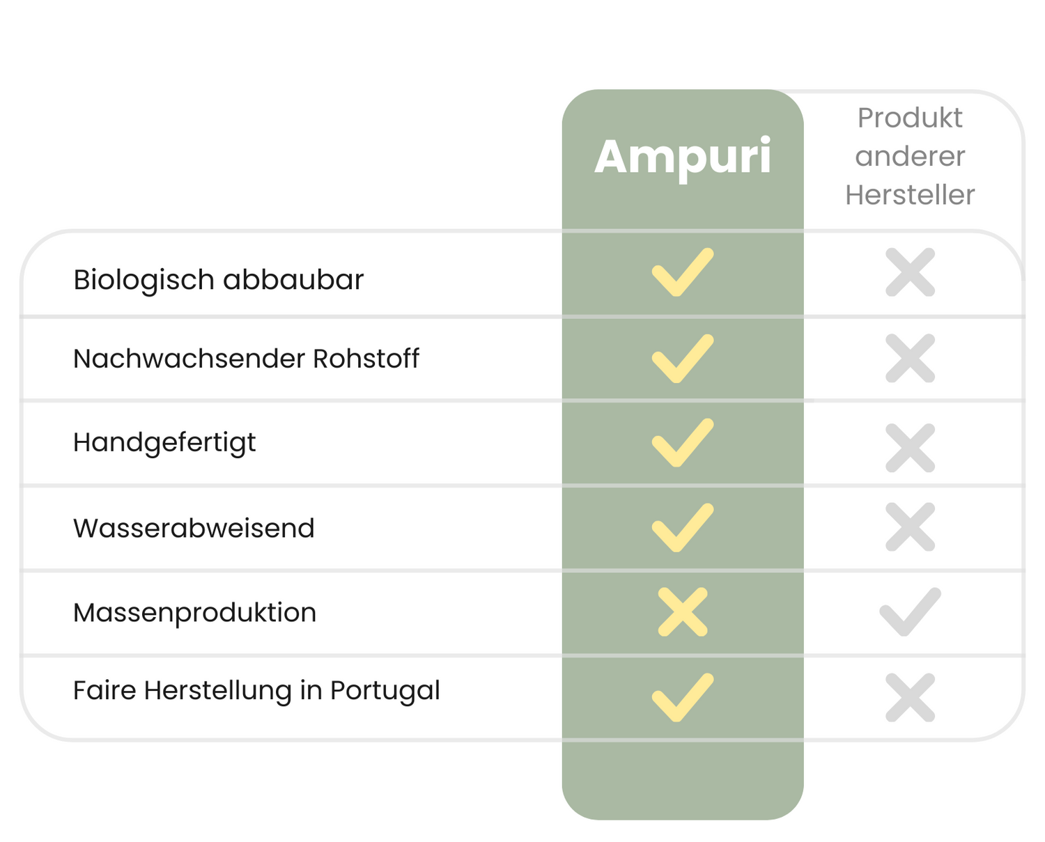 Ampuri steht für bewusste Mode abseits von Fast Fashion. Unsere Taschen aus Kork sind vegan, nachhaltig und fair produziert. Statt kurzlebigen Trends setzen wir auf Langlebigkeit, natürliche Materialien und Designs, die dich viele Jahre begleiten.